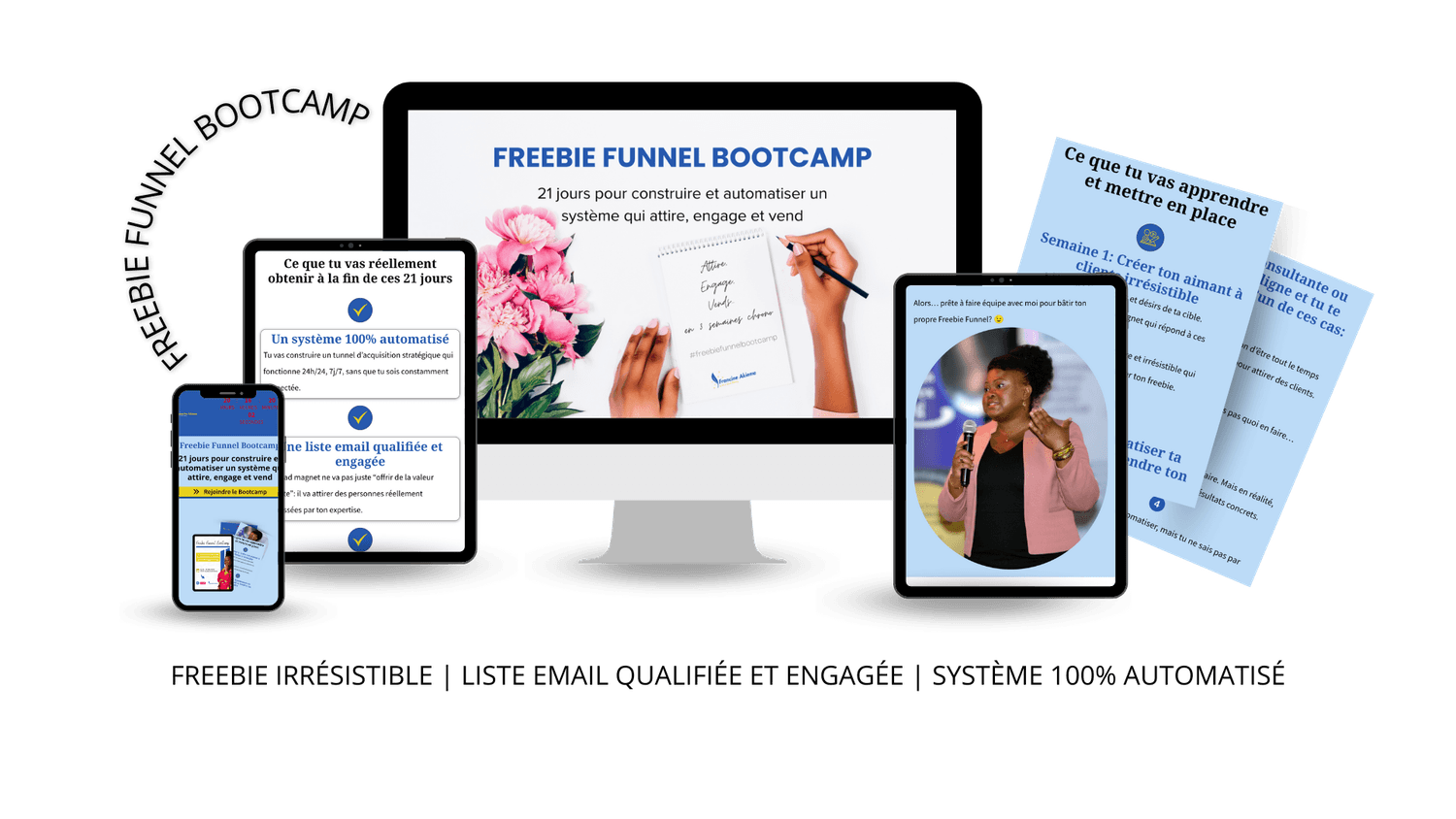 Rejoins le Freebie Funnel Bootcamp avant la fermeture des inscriptions et construis enfin un système qui tourne, même quand tu lèves le pied.